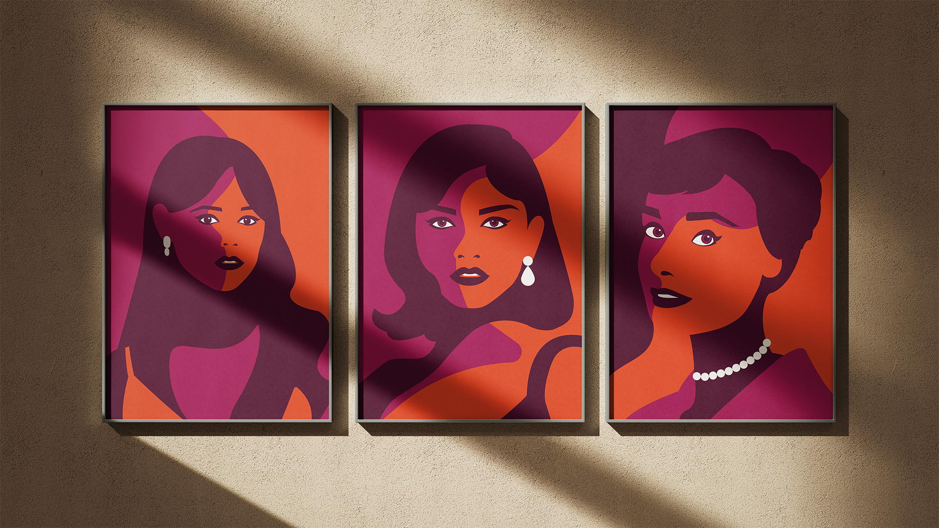 Ce projet consistait à réaliser deux portraits de célébrités en s’inspirant du style de Malika Favre. Une analyse de ses formes récurrentes et de sa palette chromatique a permis de comprendre les principes qui structurent son travail.